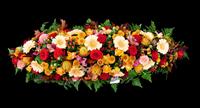 Photo for illustration purposes only | Dessus de cercueil coloré Dessus de cercueil de fleurs de saison colorées, tonalités rouge et orange - Longueur 100 cm