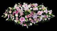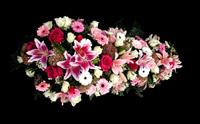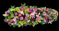 Photo for illustration purposes only | Dessus de cercueil rose et vert Dessus de cercueil de fleurs de saison, tonalités rose et vert - Longueur 110 cm