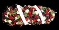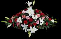 Photo for illustration purposes only | Dessus de cercueil rouge et blanc Dessus de cercueil de fleurs de saison, tonalités rouge et blanc - Longueur 120 cm