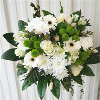 Photo for illustration purposes only | Gerbe blanche Gerbe de fleurs de saison blanches - Hauteur 50 cm