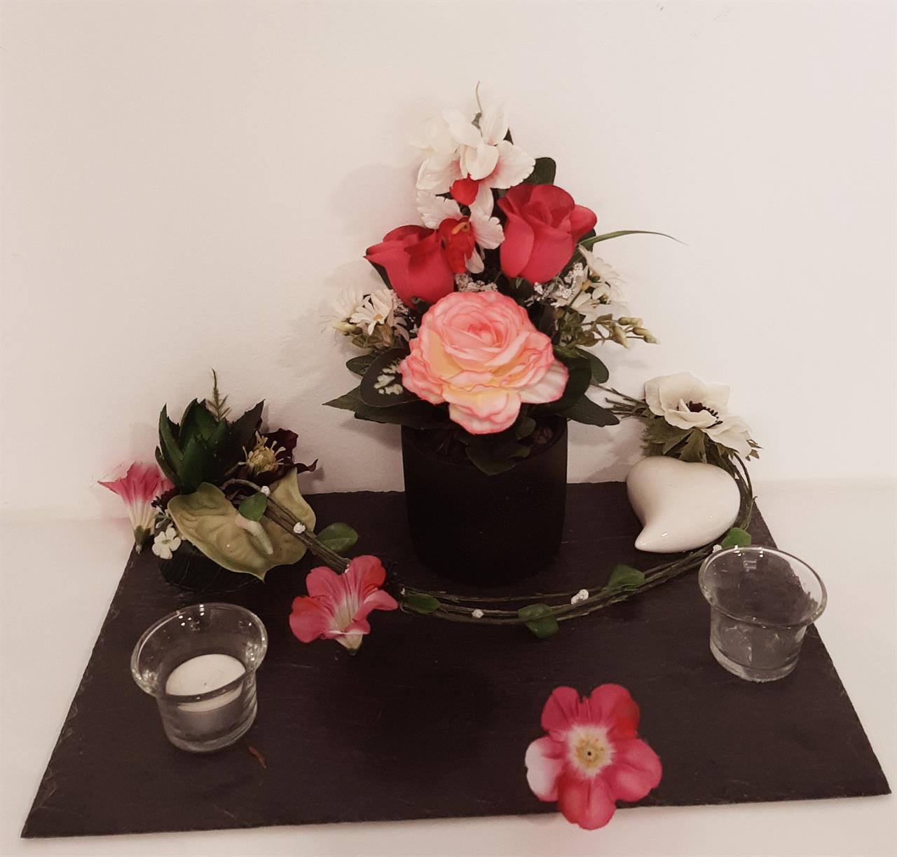 plateau fleurs tergal et bougies
