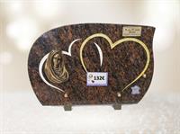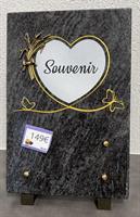 Plaque souvenir en granit sur pieds avec un motif gravé doré or fin, dim : 20cmde large X 17cm de haut,, comprenant 1 inscription (inter en bronze). Merci de nous appeler au 04 78 29 07 11 pour nous préciser le texte souhaité. Attention : commande au plus tard le vendredi jusqu'à 18h pour les obsèques qui ont lieu le lundi. Nos articles en ligne sont exclusivement disponibles pour les funérailles que nous organisons. Aucun envoi par colis n'est proposé.