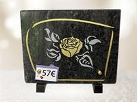 Plaque souvenir en granit sur pieds avec un motif d'une rose en inox, dim : 16cmde large X 12cm de haut,, comprenant 1 inscription (inter en bronze). Merci de nous appeler au 04 78 29 07 11 pour nous préciser le texte souhaité. Attention : commande au plus tard le vendredi jusqu'à 18h pour les obsèques qui ont lieu le lundi. Nos articles en ligne sont exclusivement disponibles pour les funérailles que nous organisons. Aucun envoi par colis n'est proposé.