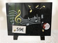 Plaque en granit sur pieds, motifs musique, comprenant 1 inscription (inter en bronze). Merci de nous appeler au 04 78 29 07 11 pour nous préciser le texte souhaité. Attention : commande au plus tard le vendredi jusqu'à 18h pour les obsèques qui ont lieu le lundi. Nos articles en ligne sont exclusivement disponibles pour les funérailles que nous organisons. Aucun envoi par colis n'est proposé.