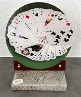 Plaque souvenir avec un socle en granit et motif de jeu de cartes en altuglas comprenant 1 inscription (inter en bronze). Dim : 19cm de large par 21cm de haut. Merci de nous appeler au 04 78 29 07 11 pour nous préciser le texte souhaité. Attention : commande au plus tard le vendredi jusqu'à 18h pour les obsèques qui ont lieu le lundi. Nos articles en ligne sont exclusivement disponibles pour les funérailles que nous organisons. Aucun envoi par colis n'est proposé.