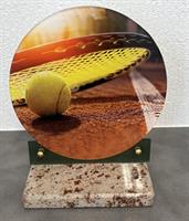 Plaque souvenir avec un socle en granit et motif de tennis en altuglas comprenant 1 inscription (inter en bronze). Dim : 19cm de large par 21cm de haut. Merci de nous appeler au 04 78 29 07 11 pour nous préciser le texte souhaité. Attention : commande au plus tard le vendredi jusqu'à 18h pour les obsèques qui ont lieu le lundi. Nos articles en ligne sont exclusivement disponibles pour les funérailles que nous organisons. Aucun envoi par colis n'est proposé.
