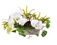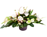 | Jardinière crème Jardinière avec lysianthus, phalénos, arums. Astibles et lotus dans contenant lesté - Couleur crème - Dimensions 38 x 13 cm et H 24 cm -