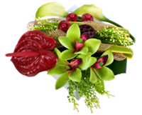 | Plateau carré ultraplat vert Plateau carré ultraplat avec cymbidiums, anthuriums et arums dans contenant lesté - Coloris vert - Dimensions 35 x 28 cm et H 13 cm -