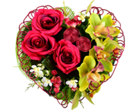 | Cœur ultraplat rouge Cœur ultraplat lesté avec roses, cymbidiums, statices - Coloris rouge - Dimensions 26 x 25 cm et H 13 cm -