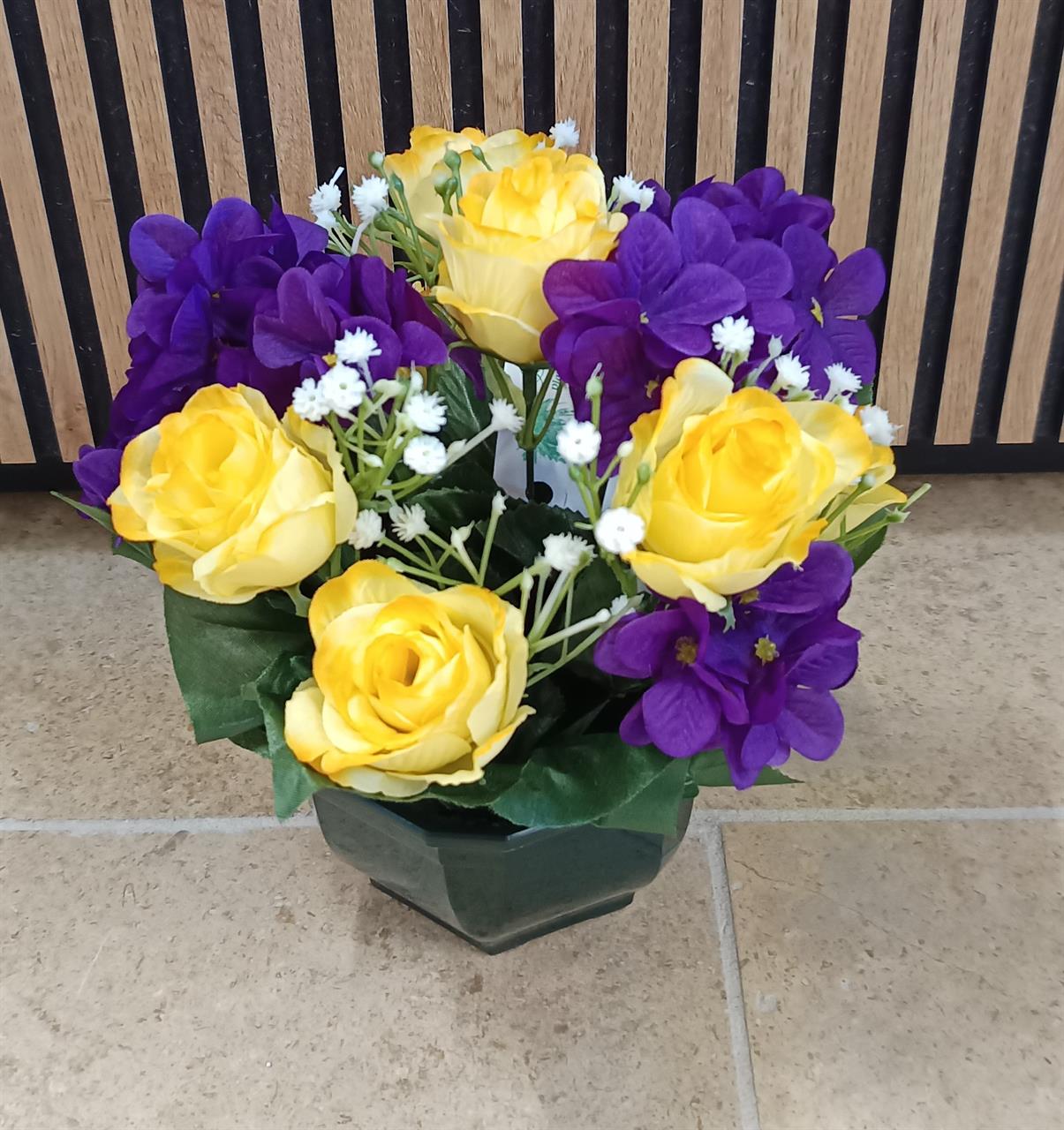 Composition de fleurs en tergal de 22 de large par 42 cm de haut