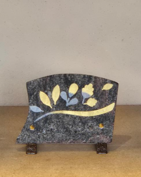 Plaque granit gris motif feuilles (dimension 17X12) - 1 inter à choisir parmi notre sélection d’inters de plus de 100 textes avec lien de parenté, d’amitié et de message de regret. (ex: A mon Papa, A notre Ami, Souvenir, etc...)