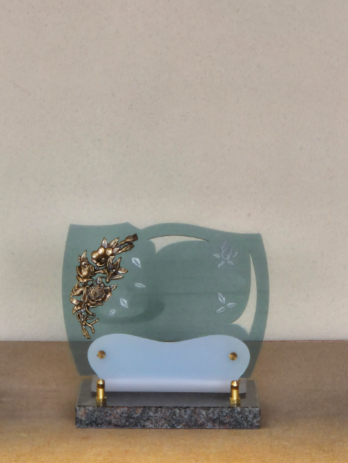 plaque altuglas motif fleurs (dimension 19X17) - 2 inters à choisir parmi notre sélection d’inters de plus de 100 textes avec lien de parenté, d’amitié et de message de regret. (ex: A mon Papa, A notre Ami, Souvenir, etc...)