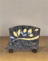 Plaque granit marron motif fleurs (dimension 18X13) - 1 inter à choisir parmi notre sélection d’inters de plus de 100 textes avec lien de parenté, d’amitié et de message de regret. (ex: A mon Papa, A notre Ami, Souvenir, etc...)