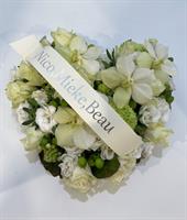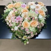 Hart in pastelkleuren 33 cm. met rouwlint.