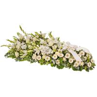 Dessus de cercueil, fleurs tissu. Photo non contractuelle.