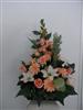 Photo non contractuelle | Devant de tombe, fleurs tergal Devant de tombe sur support d'environ 25 cm, lesté, composé de fleurs assorties