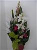 Photo non contractuelle | Devant de tombe classique, fleurs tergal Devant de tombe sur support d'environ 25 cm composé de roses, glaïeul, bony, shamerock