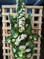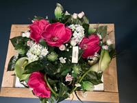 Coussin de fleurs tergal composé d'arômes et rose fushia sur une hauteur de 50 cm