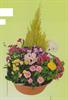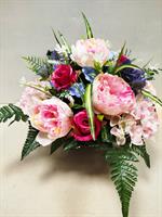 | Potée de fleurs artificielles Mélange de fleurs dans les tons roses et bleus.