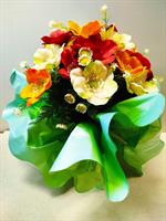 | Bouquet lesté en fleurs artifielles Bouquet lesté en fleurs artificielles. Mélange de couleurs orange, jaune et blanc.