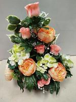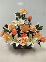 | Potée en fleurs artificielles Mélange de fleurs dans les tons oranges et roses.
