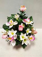 | Potée de roses et lys artificielles Mélange dans les tons blancs et roses.