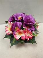 | Potée de fleurs artificielles Potée dans les tons violets et roses.
